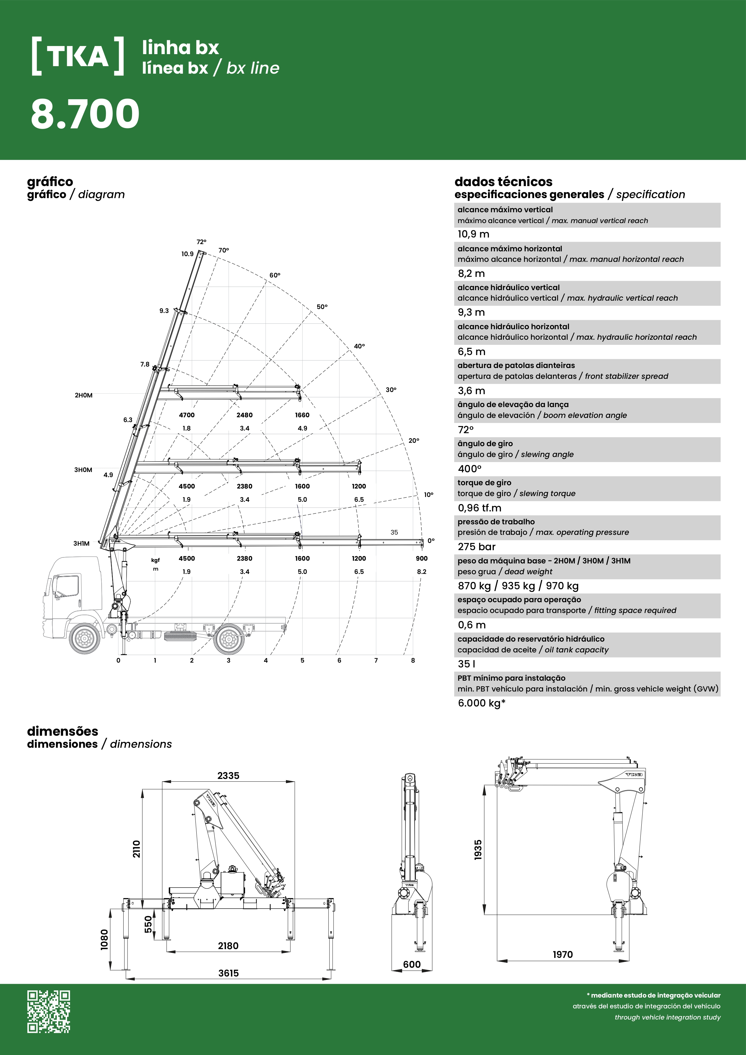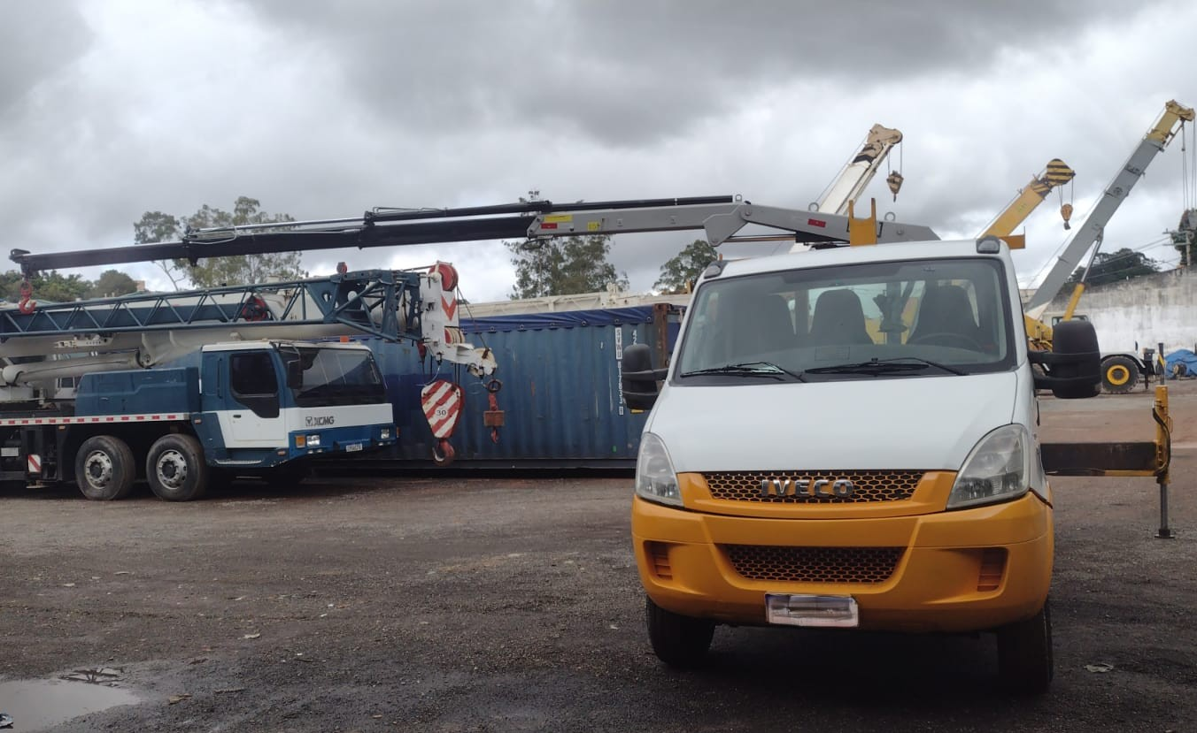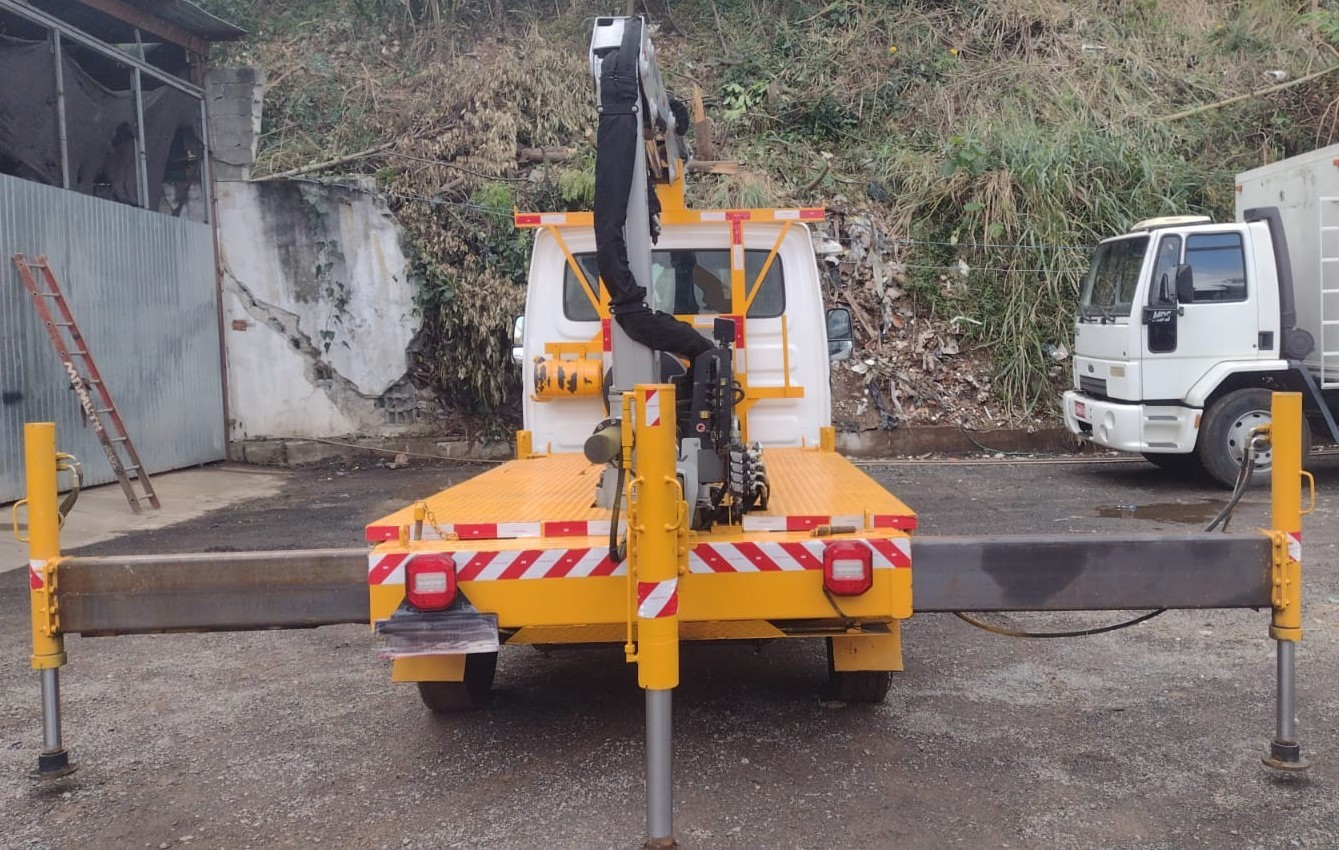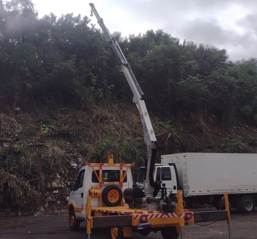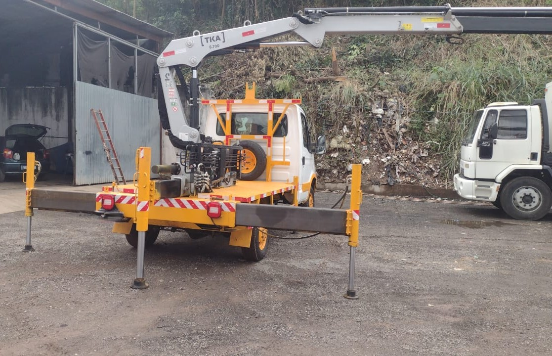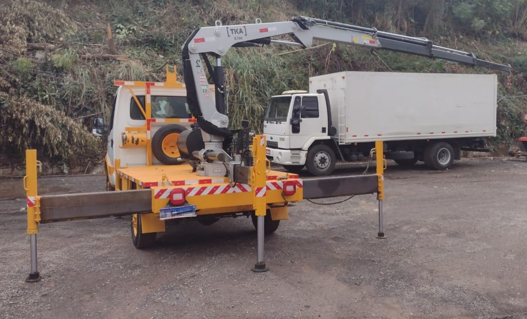 Equipamento excelente para remoção em lugares pequenos, ótimo para ser lançado sobre lajes. Peso total do conjunto é de 3700 kgs. Sem restrição de horário para a circulação na capital São Paulo. Único no Brasil com essa configuração.