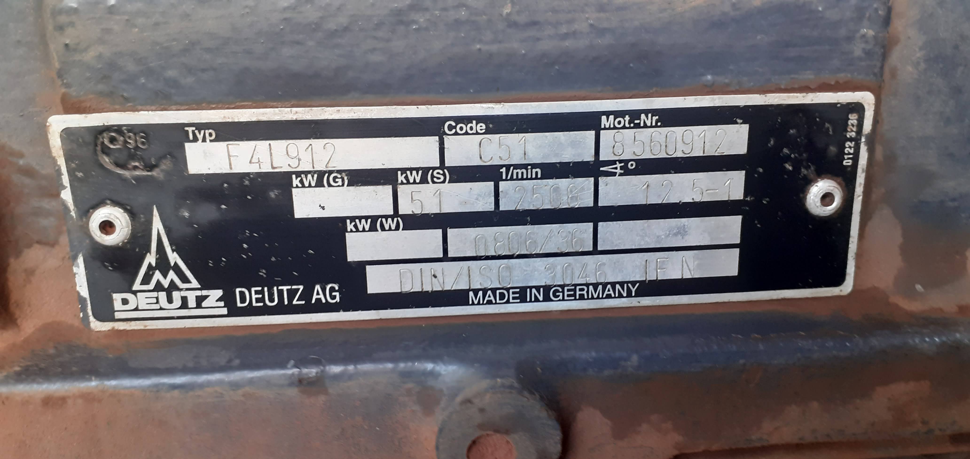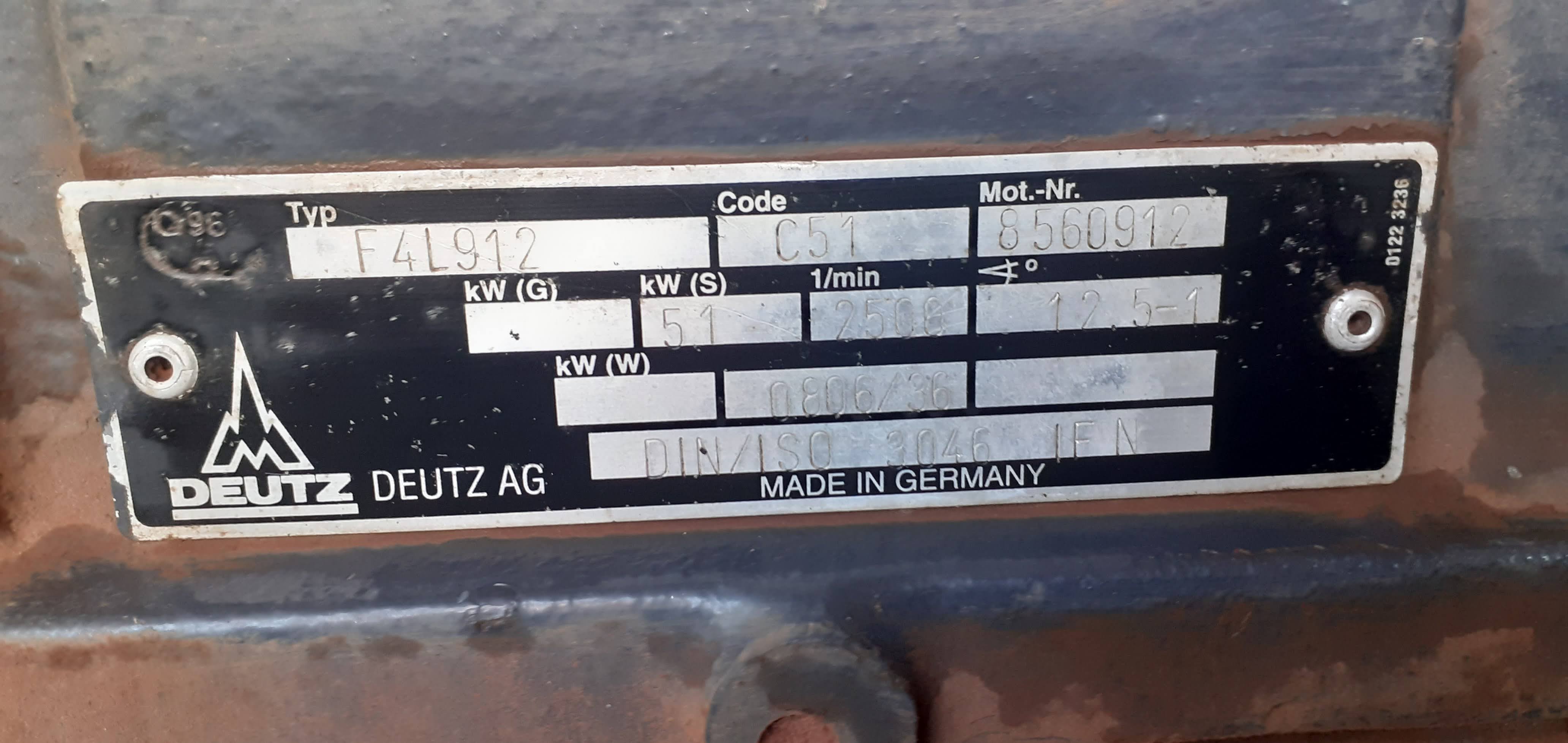 MOTOR DEUTZ F4L912Especificações:RPM: 2500HP:68KW:51