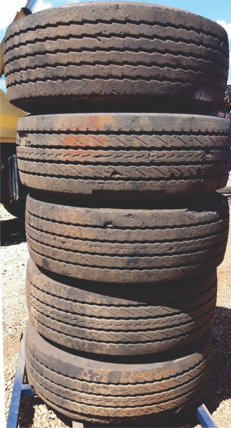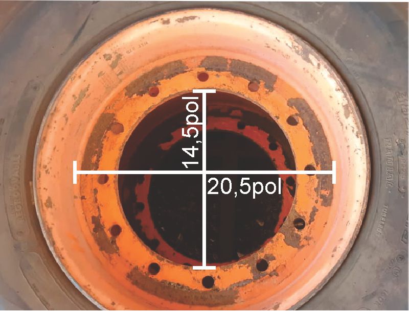 PNEU COM PREENCHIMENTO E RODA PARA PLATAFORMA AÉREA MARCA BRIGESTONE NA MEDIDA 385x65x22,5 RODA 12 FUROS, DIÂMETRO EXTERNO 20,5pol E INTERNO 14,5pol.